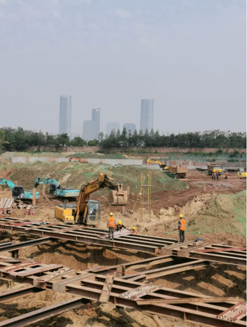 自2月28日復(fù)工以來,0728項(xiàng)目部積極組織復(fù)工復(fù)產(chǎn),堅(jiān)持一邊嚴(yán)格疫情防控,一邊積極組織施工生產(chǎn),克服重重困難,科學(xué)管理,采用沖擊錘除障,反循環(huán)樁機(jī)成孔的方法解決了直接影響后期冠梁和擋土墻施工的三經(jīng)路支護(hù)樁除障工作;采取提前重修施工道路和提前完成沖洗設(shè)備的安裝的方法,同步完成原施工道路下40多根未施工的樁和其他樁基工作;采用平行分階段施工,使基坑支護(hù)鋼支撐工程進(jìn)度得到保證;采用挖掘機(jī)作為材料運(yùn)輸機(jī)具,確保了冠梁和擋墻施工材料運(yùn)輸順利進(jìn)行;通過重新規(guī)劃打樁順序,合理安排,使樁基施工提前完成施工任務(wù)……解決了施工過程中一系列的重點(diǎn)難點(diǎn)工作,為后期工程的順利進(jìn)行打下了堅(jiān)實(shí)的基礎(chǔ)。