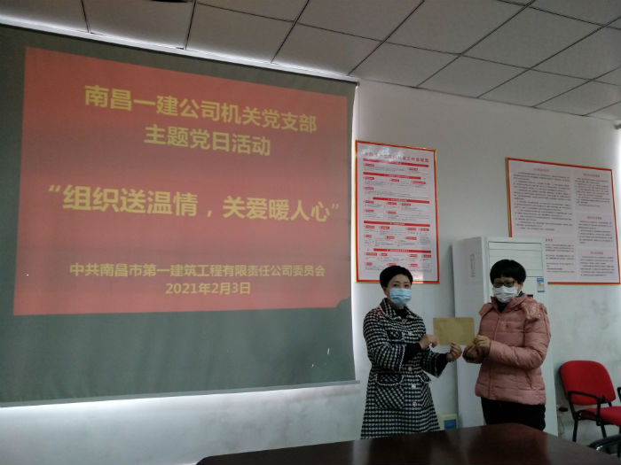 南昌一建機(jī)關(guān)黨支部開展“組織送溫情,關(guān)愛暖人心”主 題 黨 日 活 動(dòng)發(fā)布日期:2021年02月05日 閱讀: 來自:本站原創(chuàng)